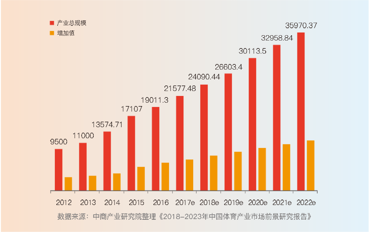 行業呈上升趨勢,潛力巨大。據相關數據預測,到2025年,體育產業總規模將超過5萬億元,體育行業將迎來增速約為11%-22%的黃金十年。
